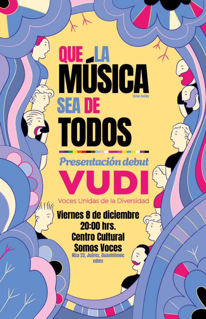 VUDI es un proyecto coral comunitario integrado por personas de la comunidad diversa, VUDI es un espacio de disfrute a través de la música, un lugar que procura la libertad de ser y alimentar el espíritu cantando. Empoderar a los integrantes con herramientas de expresión artística, disciplina para alcanzar un óptimo nivel musical.